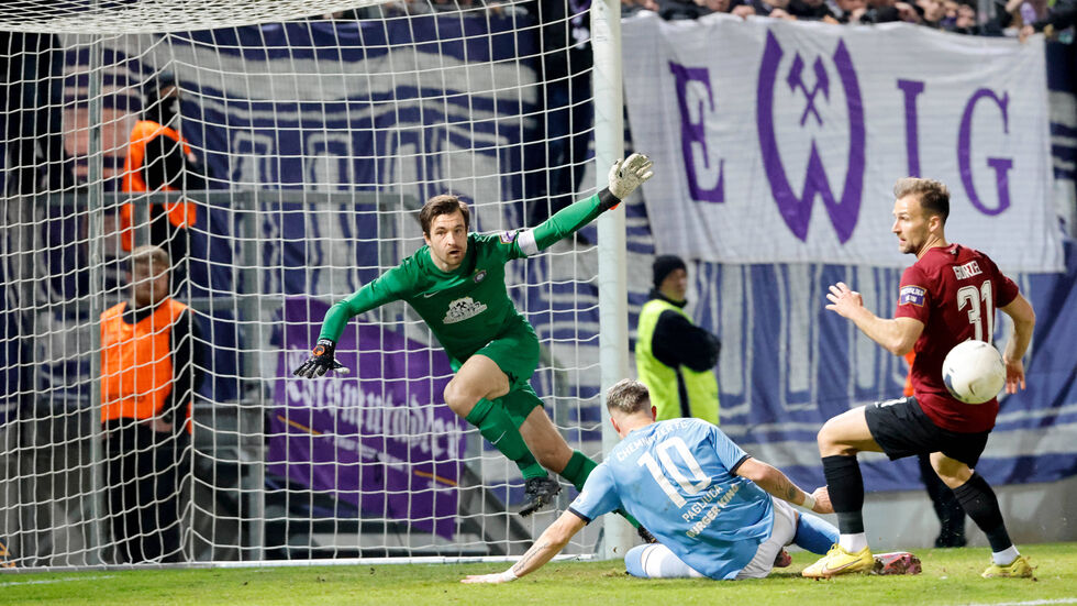 Letztlich lag es an Torhüter Martin Männel, dass die Niederlage nicht noch höher ausfiel. Der Kapitän hielt mit starken Reflexen gegen die Kopfbälle von Tobias Müller (57.) und Brügmann (73.). Im zweiten Versuch traf Brügmann dann, als er den Ball nach einer starken Vorarbeit von Löwe am chancenlosen Männel vorbeischob. Fast 13 Jahre nach dem bisher letzten Pokal-Duell - damals war es das Finale - setzte sich Chemnitz erneut gegen Aue durch. (mit dpa)