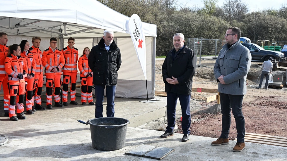 Grumbach bekommt eine neue Rettungswache. Der Grundstein wurde gelegt, nun kann der Bau in die Höhe gezogen werden. Geplant sind moderne Räume für Personal und Technik. Daneben entstehen Fahrzeughallen und Desinfektionsbereiche. Das soll die Arbeitsbedingungen der Einsatzkräfte spürbar verbessern.