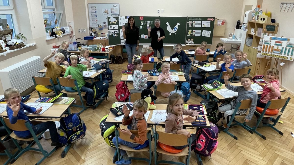 - Fröhliche Gesichter in der Klasse 1a