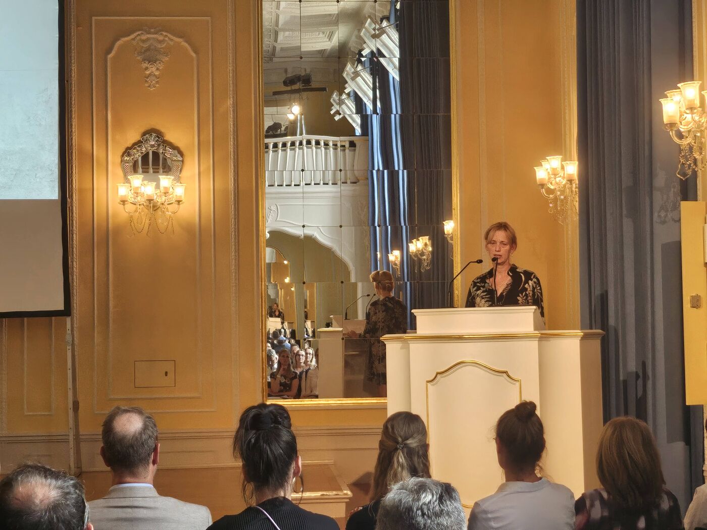 - Karin Prien, Bundesbildungsministerin, beim "Handygipfel" im RoRo Gymnasium Dresden