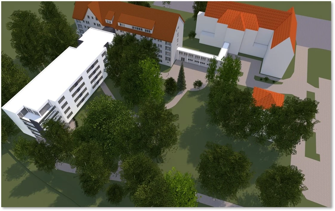 Im geplanten Anbau entstehen 56 Einzelzimmer. Im Gegenzug wird die Anzahl der Doppelzimmer im Altbau reduziert. Der Neubau wird unabhängig vom Bestandsgebäude errichtet. Deshalb wird der Heimbetrieb weitgehend unbeeinträchtigt bleiben.