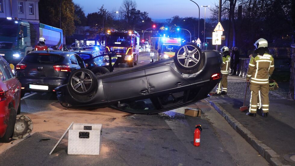 Bei einem Auffahrunfall auf der Radeburger Straße in Dresden hat sich ein PKW überschlagen - drei Menschen sind beim Unfall verletzt worden.