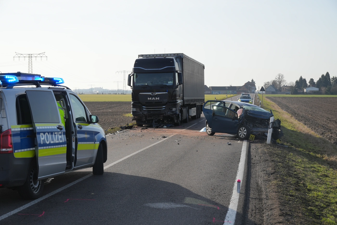 - Die Unfallstelle auf der B186 westlich von Leipzig.