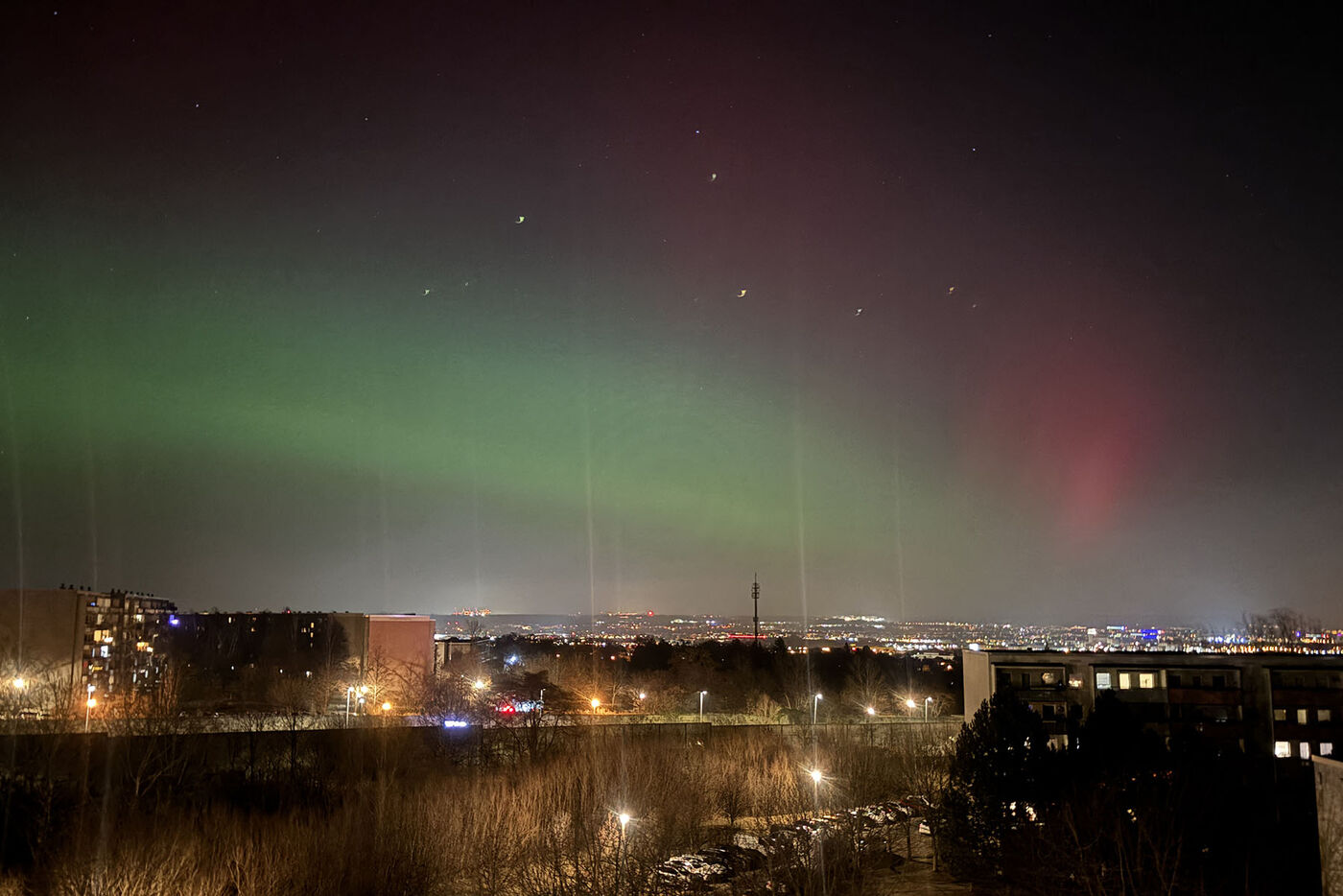 Polarlichter tanzten über Stadt und Land. Ein unerwarteter starker Sonnensturm war der Auslöser für dieses Naturphänomen. In der Dresdner Neustadt, in Weinböhla, Radebeul, Heidenau, Grumbach oder Medingen wurden die Kameras gezückt.