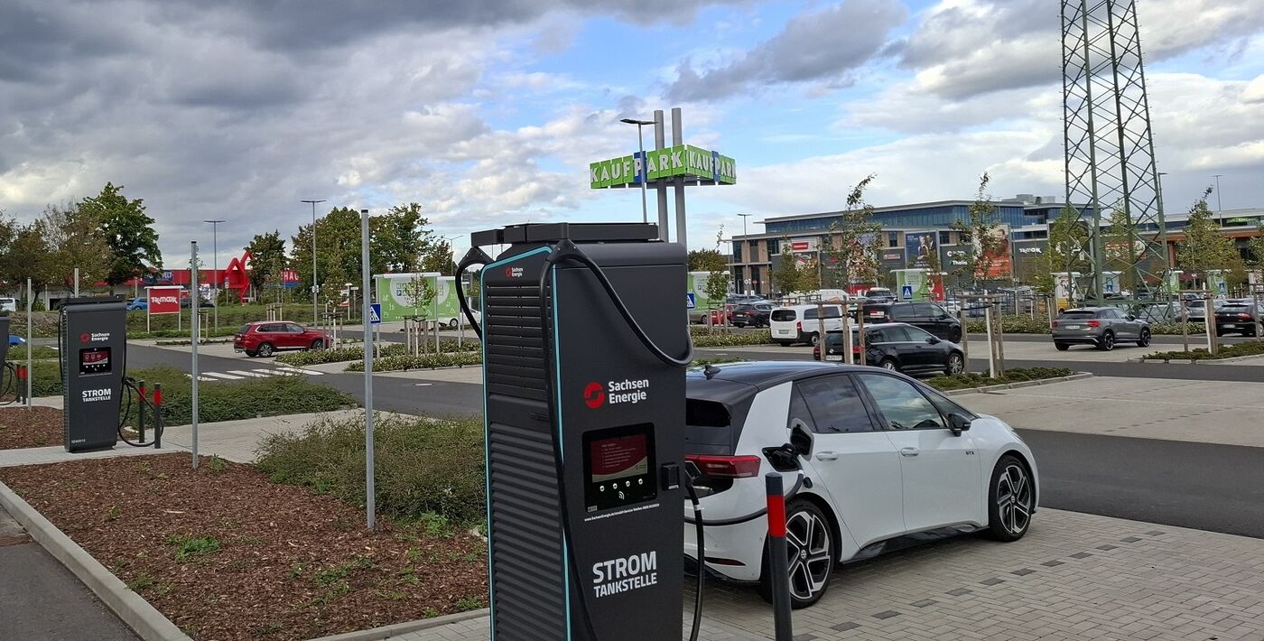 Noch schnell etwas einkaufen und gleichzeitig das E-Auto laden - das geht jetzt im Kaufpark an der Dohnaer Straße. Sachsen Energie hat auf dem Parkplatz fünf neue Schnellladestationen und somit zehn Ladepunkte in Betrieb genommen.