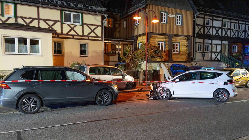 Am späten Montagnachmittag sind auf der B 172 acht Autos bei einem Unfall beschädigt worden. Ein Mann (19) wurde leicht verletzt. Ein 51-Jähriger fuhr nach Angaben der Polizei mit einem VW Tiguan in Richtung Schmilka. Er wollte mehrere Autos überholen und scherte nach links aus. Dabei kam es zum Zusammenstoß mit einem VW Touran (Fahrer 19), der bereits überholte. Der Touran kam anschließend von der Fahrspur ab, kollidierte mit mehreren geparkten Autos und kam an einer Hauswand zum Stehen.