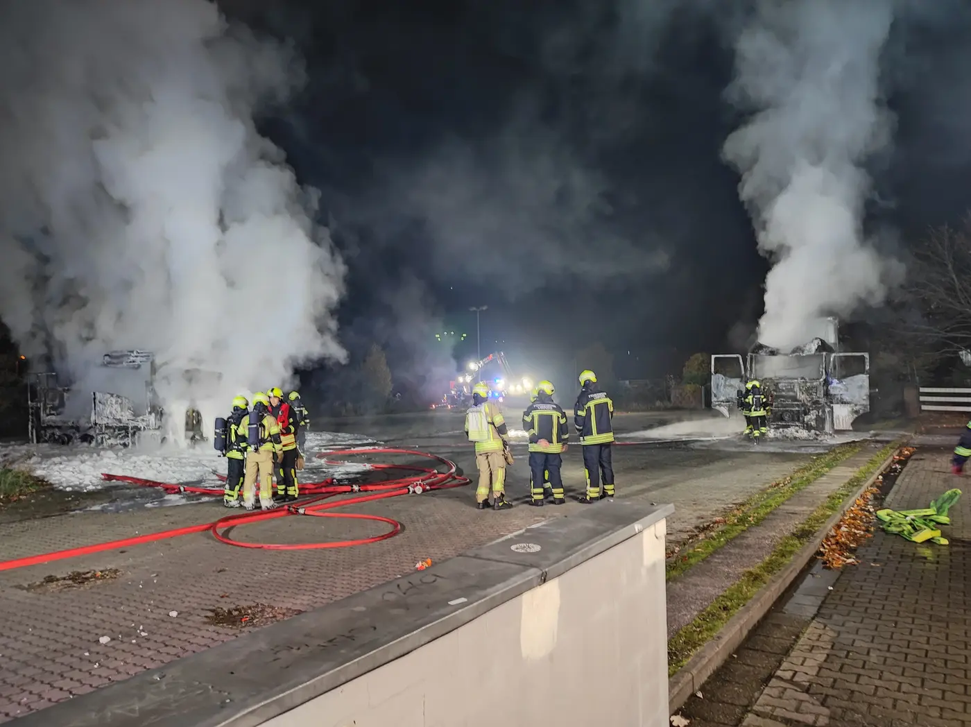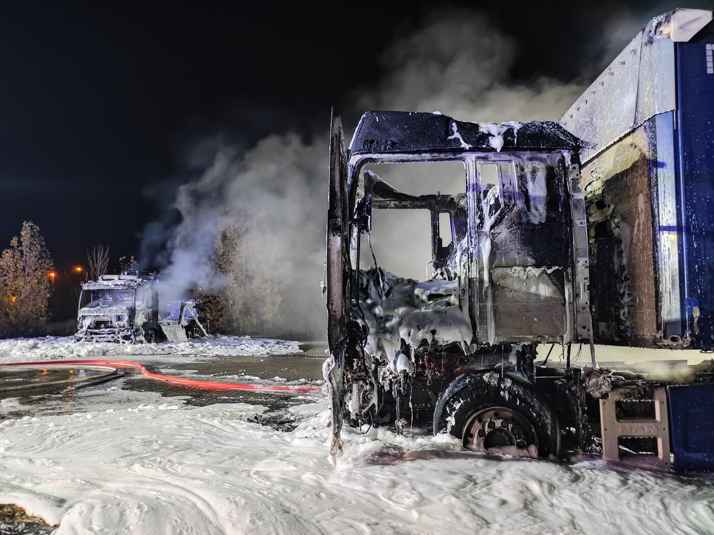 - Die beiden abgefackelten Lkw.