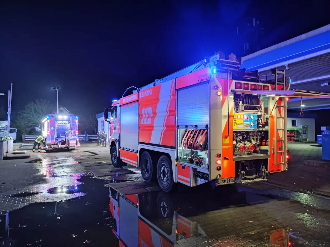 Knauthain: Zwei Laster neben Tanke angezündet