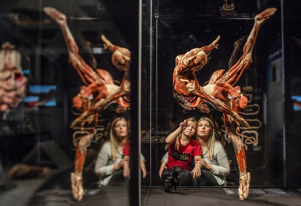 - Ein Kind zeigt nach oben, die Mutter blickt staunend hinterher: In der Chemnitzer Ausstellung „KÖRPERWELTEN & Der Zyklus des Lebens“ werden Anatomie, Bewegung und Vergänglichkeit auf eindrucksvolle Weise sichtbar.