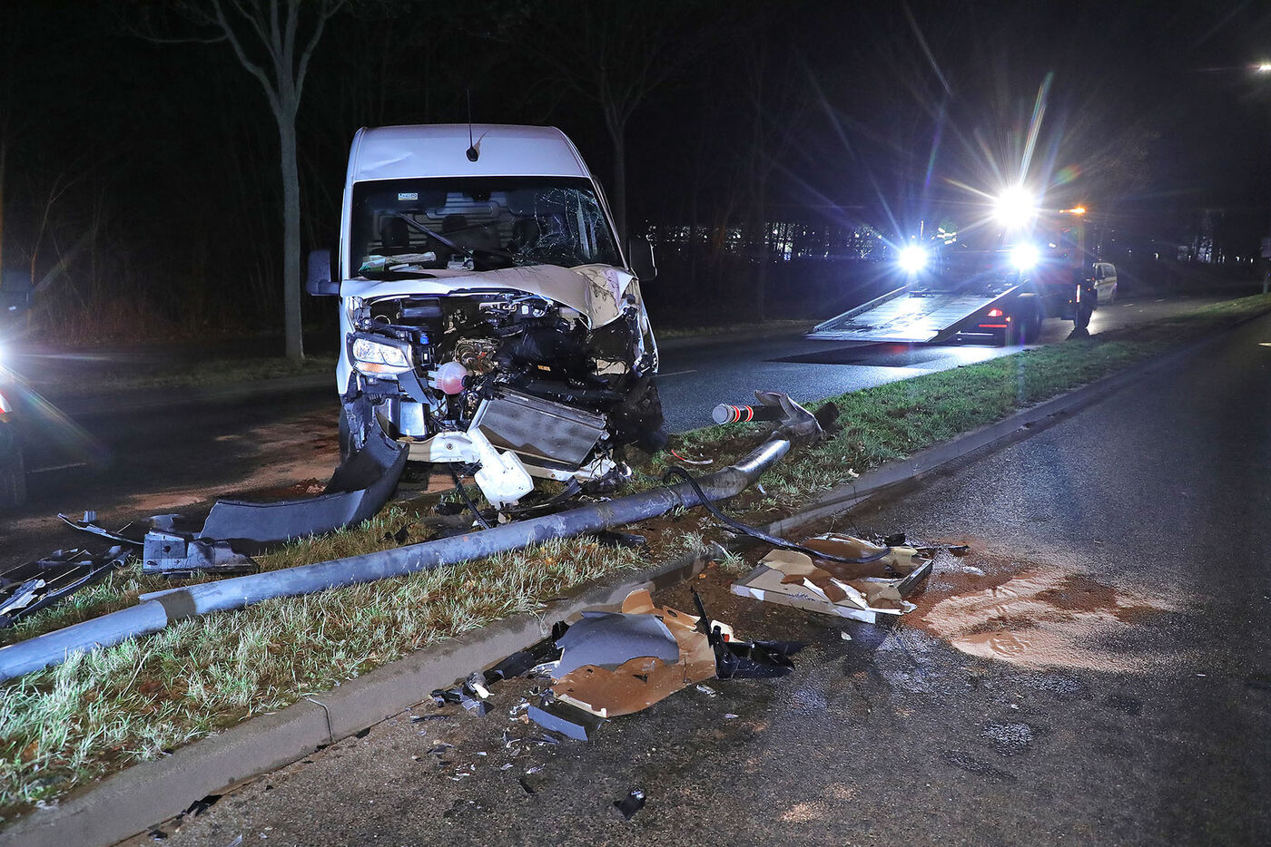 Auf der Dohnaer Straße in Dresden-Prohlis hat am Montagabend ein Mercedes-Sprinter eine Laterne gefällt. Der Fahrer war gegen 22:20 Uhr in Richtung Heidenau nach links von der Fahrbahn geraten und Höhe Gleisschleife gegen den Lichtmast gekracht. Der kippte in der Folge um. Der 46-jährige Deutsche wurde bei dem Unfall leicht verletzt. Er hatte nach Angaben der Polizei über 1,6 Promille intus. Am Sprinter entstand Totalschaden. Die Dohnaer Straße wurde stadtauswärts gesperrt. Die Buslinie 66 mußte umgeleitet werden.