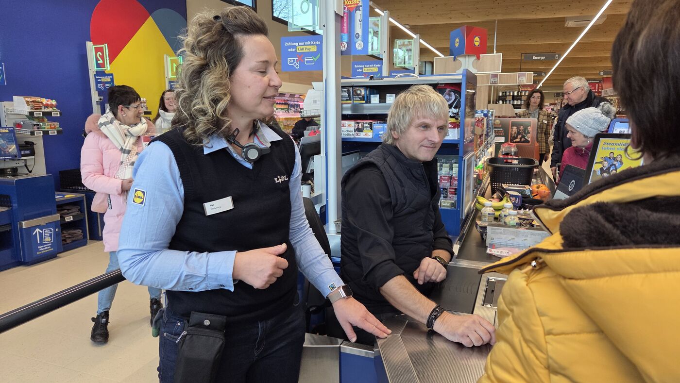 Schon zwei Stunden vor der Eröffnung standen die ersten Kunden vor dem Markt. Für die ersten hundert Kunden gab es Einkaufsgutscheine. Die waren nach einer knappen halben Stunde weg. Ab 9 Uhr hat Bürgermeister Jörg Klaffenbach hinter der Kasse gesessen und für den guten Zweck kassiert. Knapp 600 Euro waren zusammengkommen. Die hat Lidl auf 1.000 Euro aufgerundet und an den Musiktheater-Verein Da Capo gespendet.