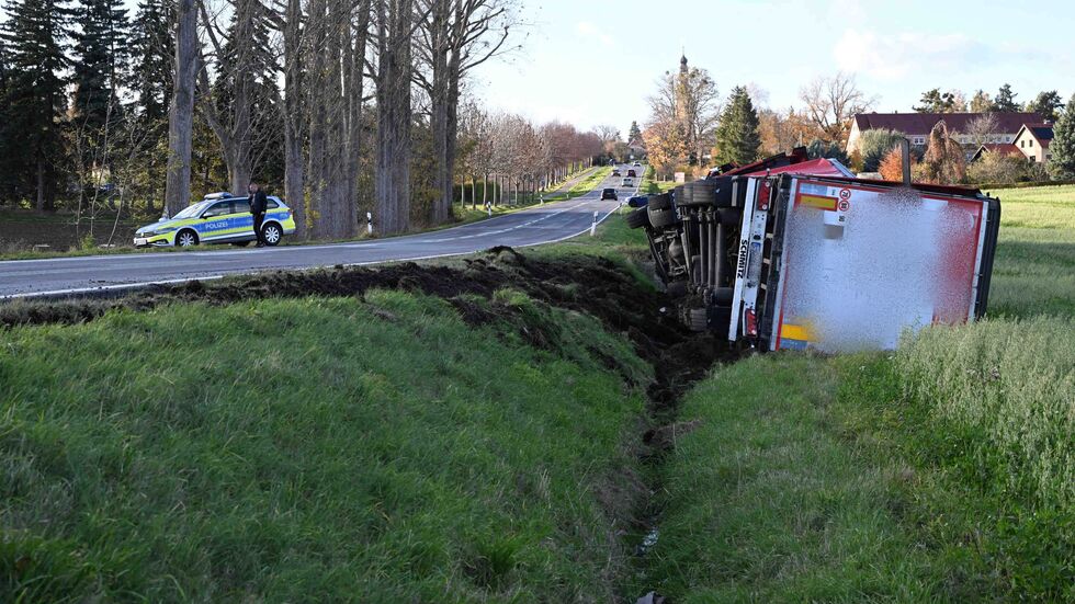 Lkw bei Hochkirch umgekippt+++Unfall mit Polizeiauto in Görlitz