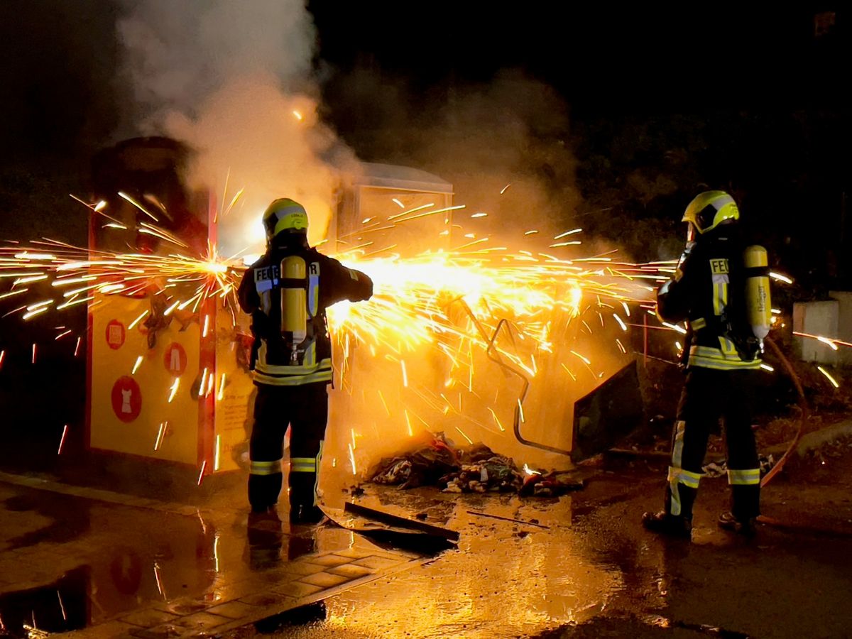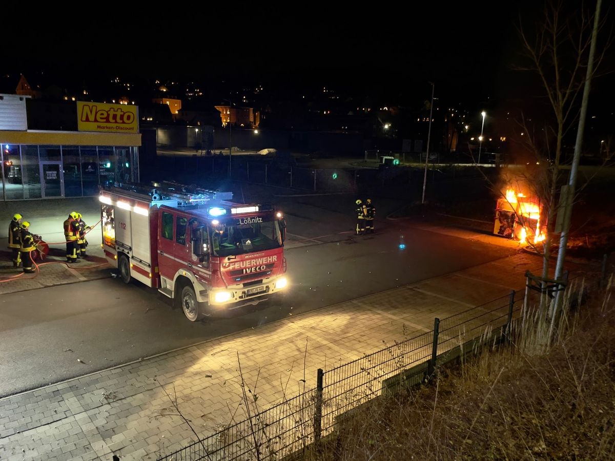 In Lößnitz haben am Abend des Neujahrstages mehrere Personen mit Feuerwerkskörpern hantiert. Wenige Minuten später stand ein Kleidercontainer am Netto in Flammen. Die Feuerwehr rückte an und löschte.
