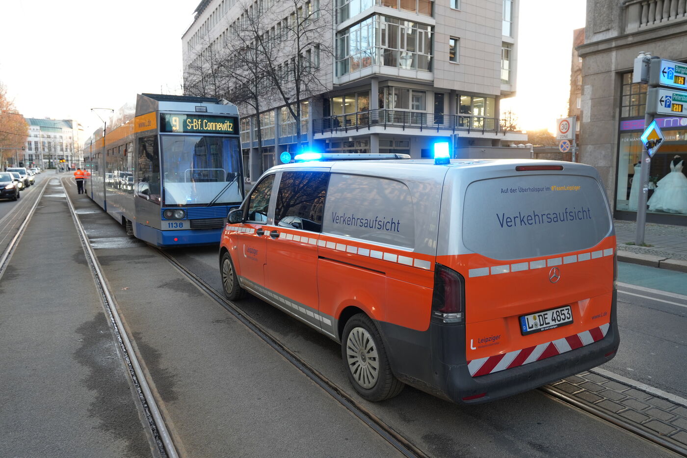 - Die Unfallstelle auf dem Martin-Luther-Ring in Leipzig.