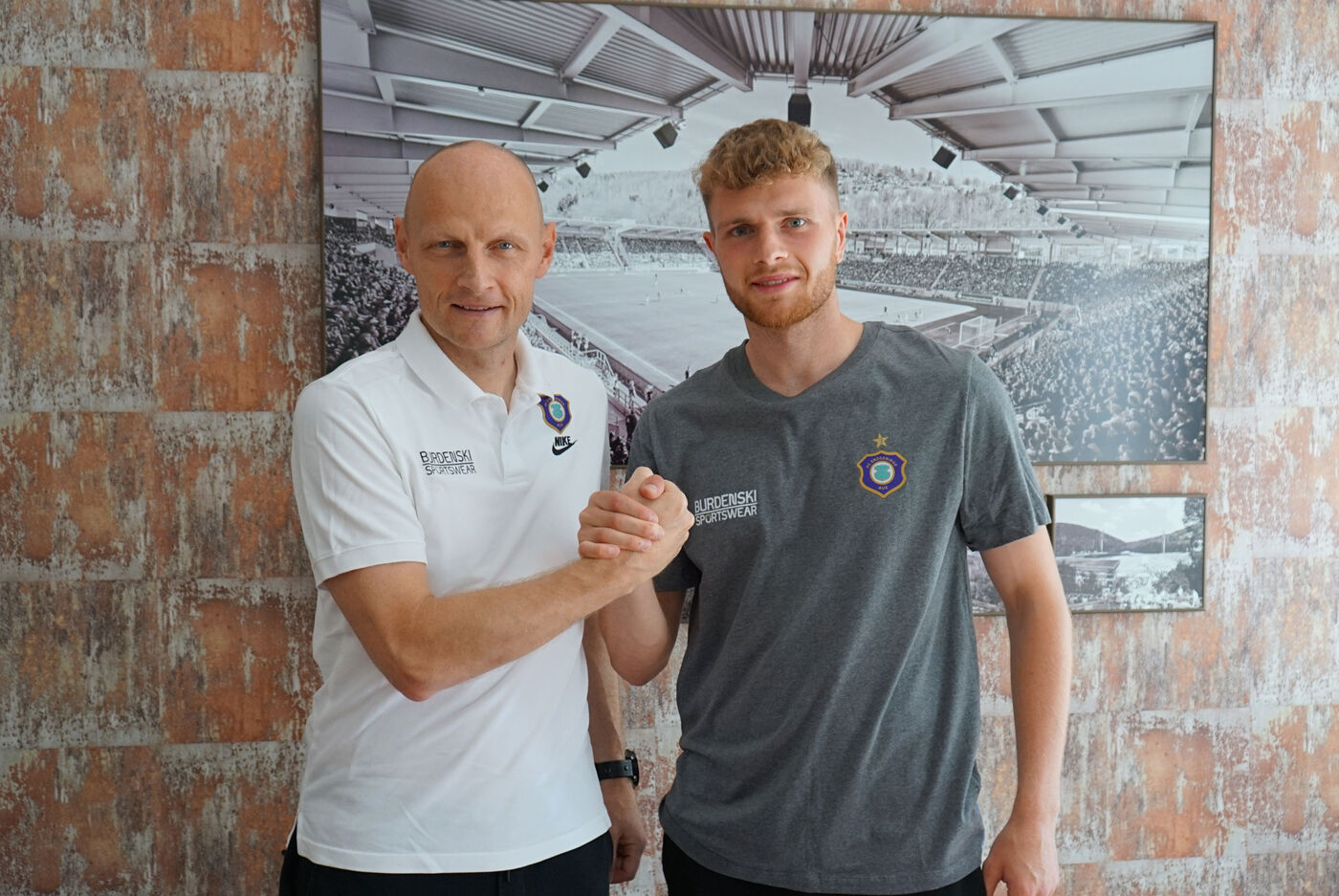 - FCE-Sportgeschäftsführer Matthias Heidrich (links) mit Neuzugang Steffen Meuer.