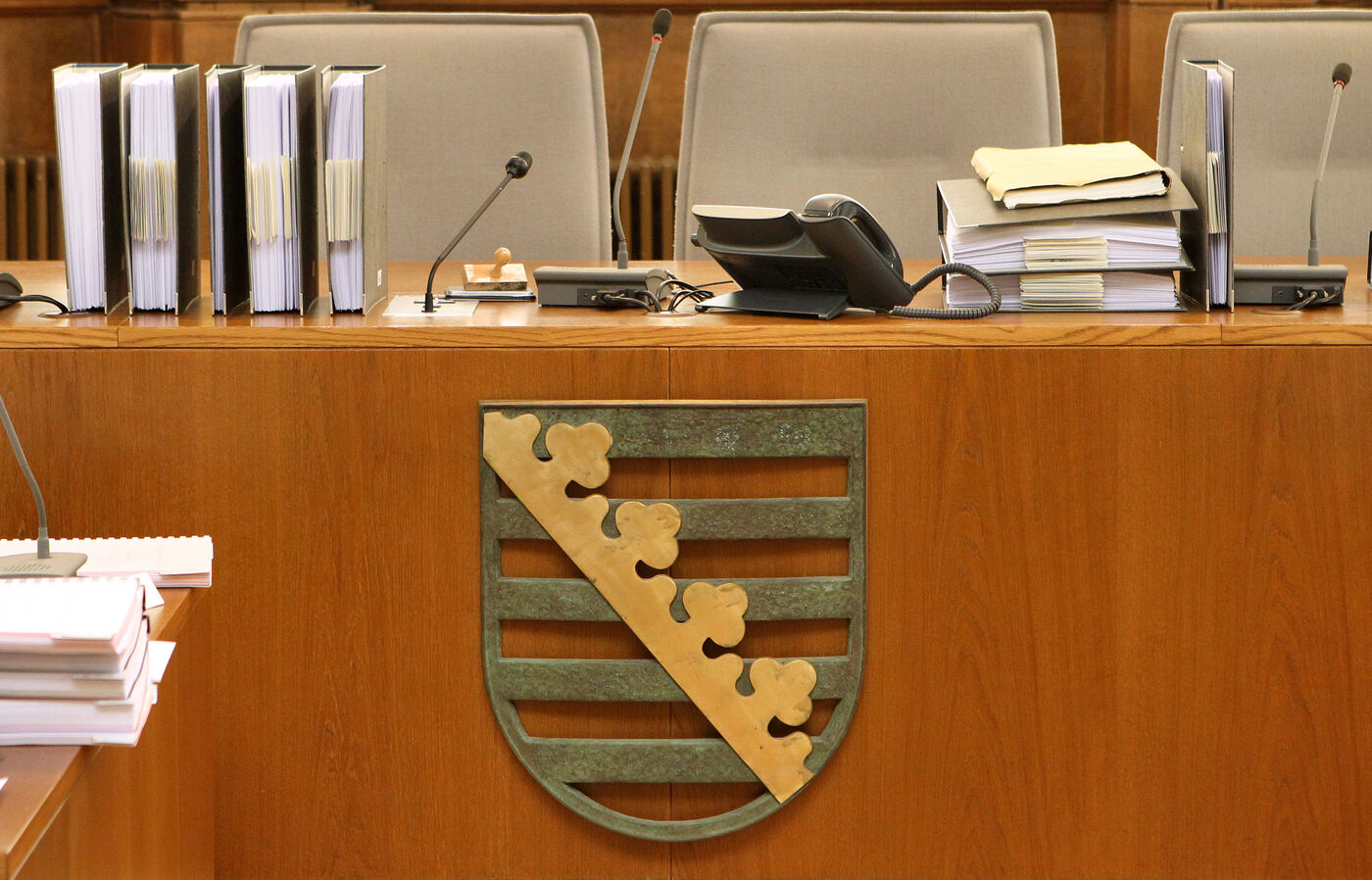 - Ein Gerichtssaal im Landgericht Leipzig, hier findet die Verhandlung statt.