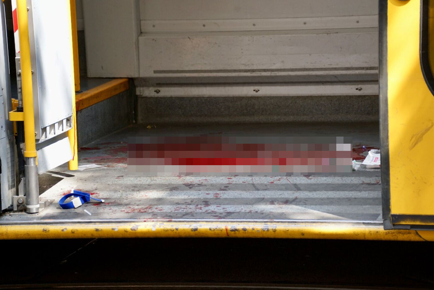 - Überall Blut: Die Straßenbahn nach der Attacke.
