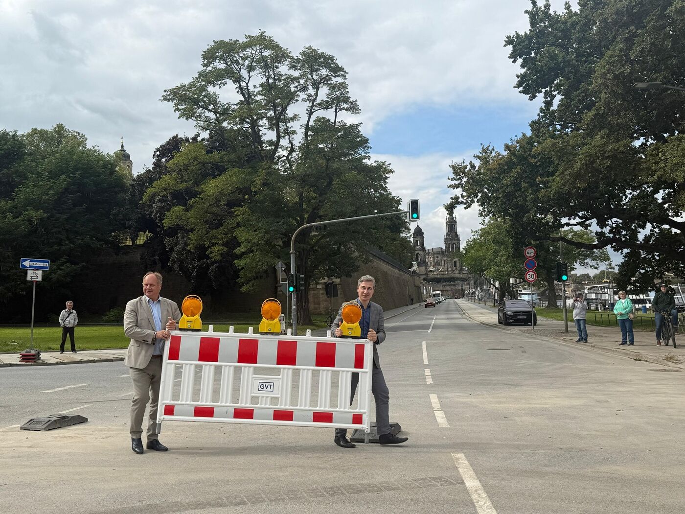 Der Verkehr rollt wieder am Dresdner Terrassenufer! Am Mittwochmittag wurden die letzten Absperrungen beiseite geräumt - nun können Autofahrer, Radler und Fußgänger den Bereich wieder komplett nutzen.