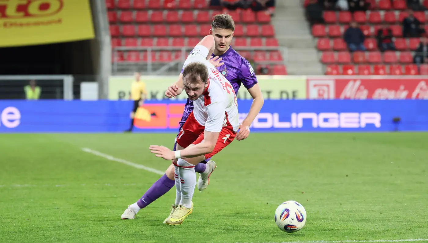 Nach der Pause drängten die Veilchen auf den Ausgleich. Julian Guttau prüfte Gebhardt mit einem Freistoß aus gut 25 Metern. Erik Weinhauer hatte gleich zwei große Möglichkeiten, vermochte den Regensburger Schlussmann aus jeweils fünf Metern aber nicht zu überwinden. Der eingewechselte Julian Günther-Schmidt scheiterte ebenfalls an Gebhardt.