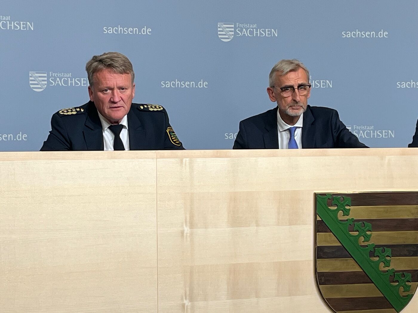 - Landespolizeipräsident Jörg Kubiessa (li.) und Innenminister Armin Schuster stellten den neuen Gesetzentwurf vor
