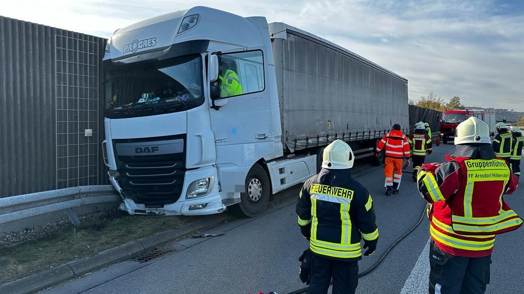Angetrunkener Fahrer steuert LKW auf A4 bei Kodersdorf gegen Schallschutzwand