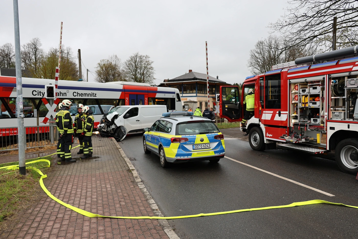 Großeinsatz für Feuerwehr, Rettungsdienst und Polizei am Sonntagnachmittag. An einem Bahnübergang in Oelsnitz im Erzgebirge kam es zu einem Unfall. Dabei kollidierten an der Pflockenstraße eine Citybahn und ein Transporter. Laut unserem Reporter vor Ort wurde der Fahrer des Transporters verletzt und ins Krankenhaus gebracht. Die 16 Fahrgäste im Zug blieben unverletzt, mussten ihre Reise aber unterbrechen. Für sie wurden Taxis organisiert. Die Straße sowie die Bahnstrecke waren zeitweise voll gesperrt. Die Polizei ermittelt zur Unfallursache.