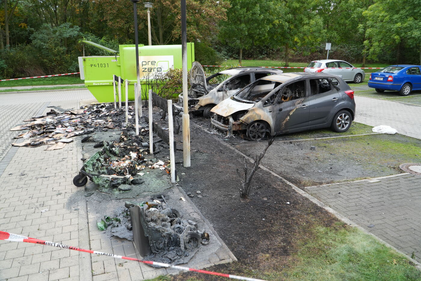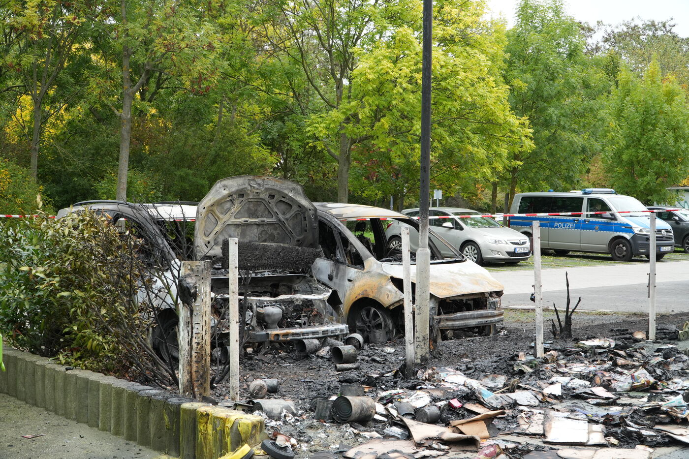 - Auf dem Parkplatz fackelten mehrere Autos ab.