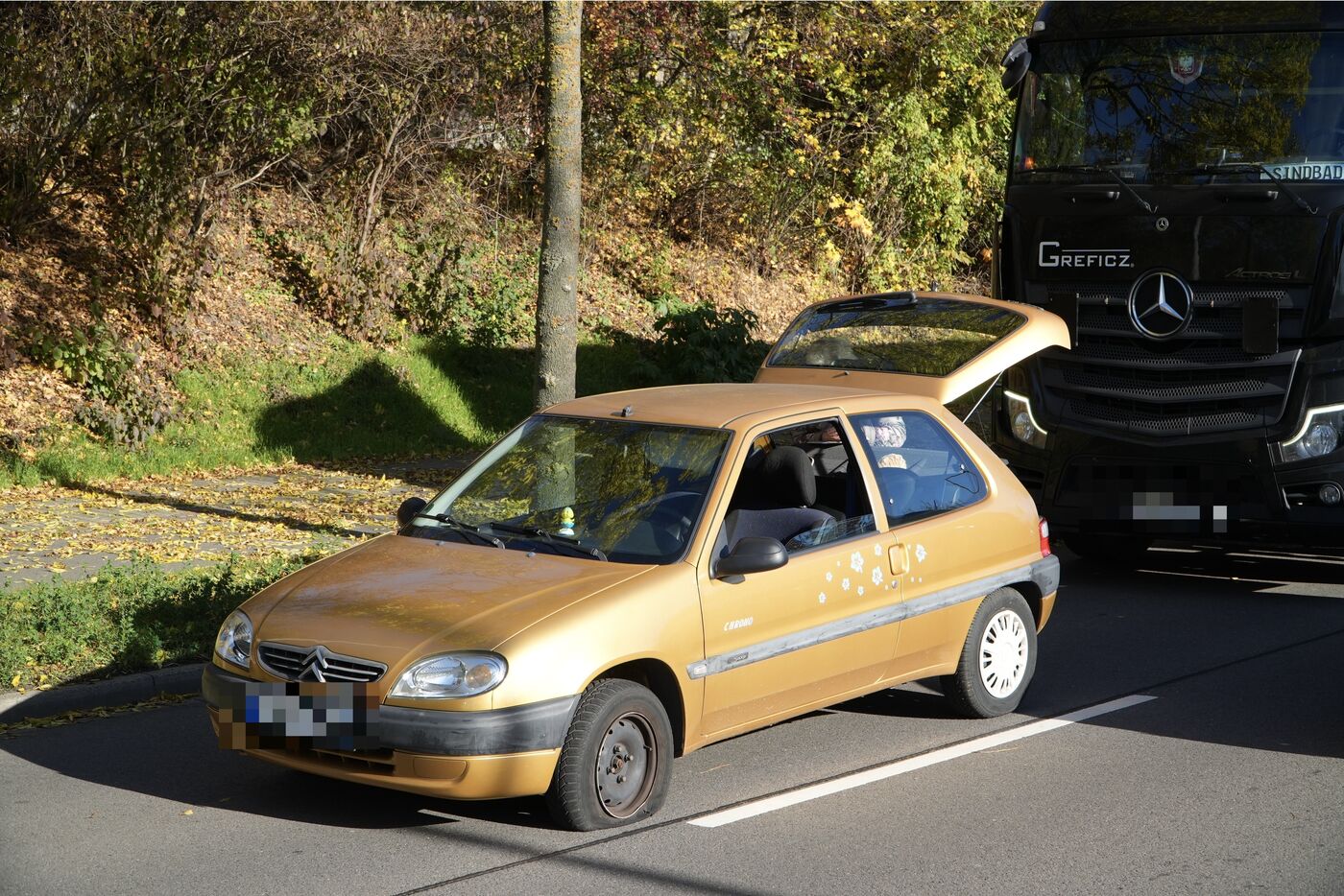 - Die Unfallstelle auf der linken Fahrspur der Permoserstraße stadteinwärts.