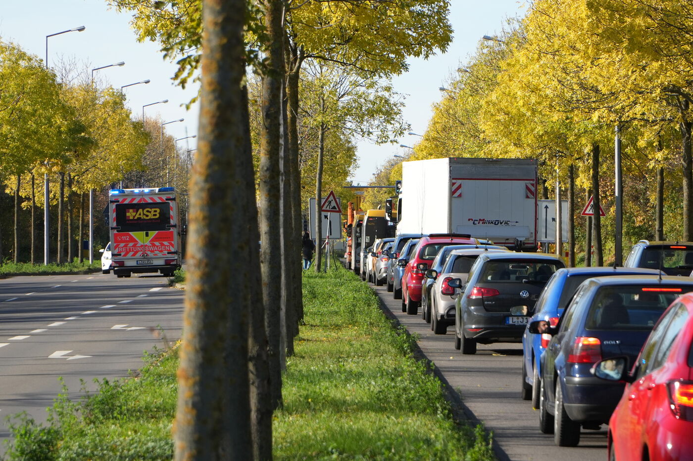- Ein langer Stau hat sich am Mittwochmittag auf der Permoserstraße in Leipzig gebildet.