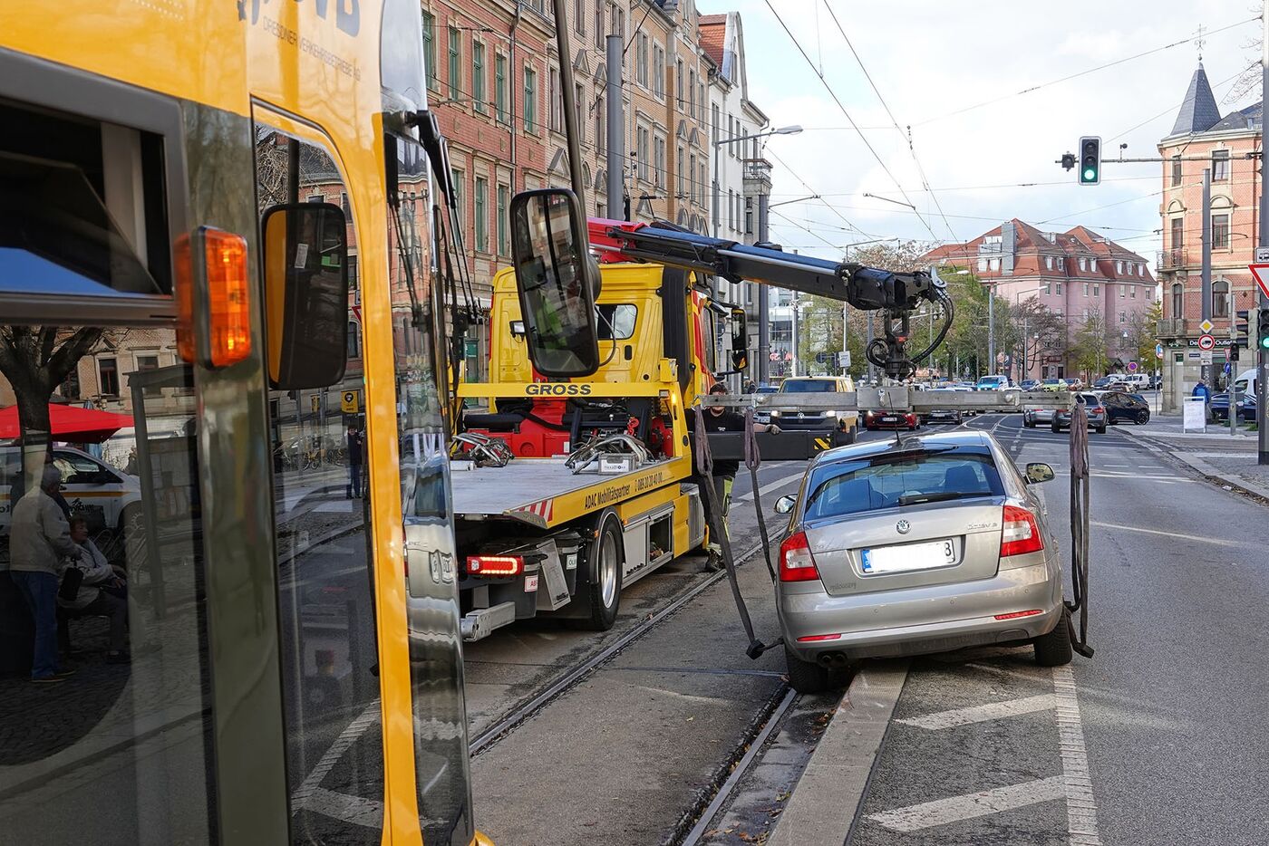 Pkw legt Straßenbahnverkehr in Pieschen lahm