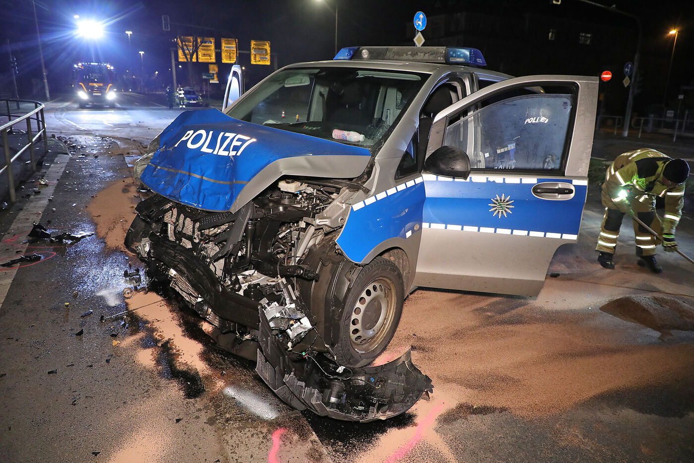 An der Kreuzung Teplitzer Straße/Heinrich-Zille-Straße in Dresden hat es am späten Freitagabend einen schweren Verkehrsunfall mit einem Polizeiauto gegeben. Der Mercedes-Benz Vito kollidierte mit einem PKW Jeep Grand Cherokee.