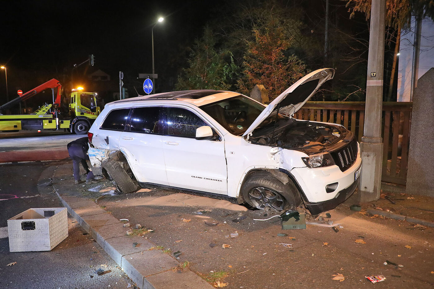 Nach dem Zusammenstoß schleuderte der Jeep gegen einen Ampelmast. Glücklicherweise gab es keine Verletzten. Der Streifenwagen soll nach Informationen unseres Reporters mit Sondersignal unterwegs gewesen sein.