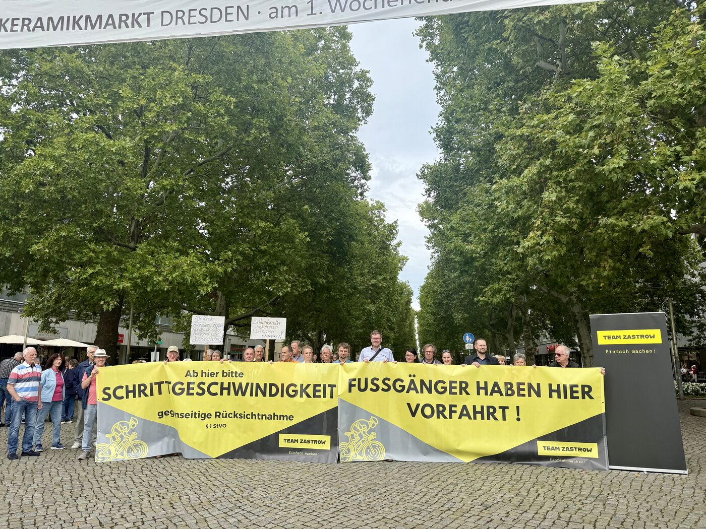 Schon im vergangenen Jahr warb Baubürgermeister Stephan Kühn für mehr Rücksicht. Er besuchte die Flaniermeile kurz nach dem Einsturz der Carolabrücke, sprach damals mit Radfahrern und verteilte Postkarten mit Verhaltenshinweisen.