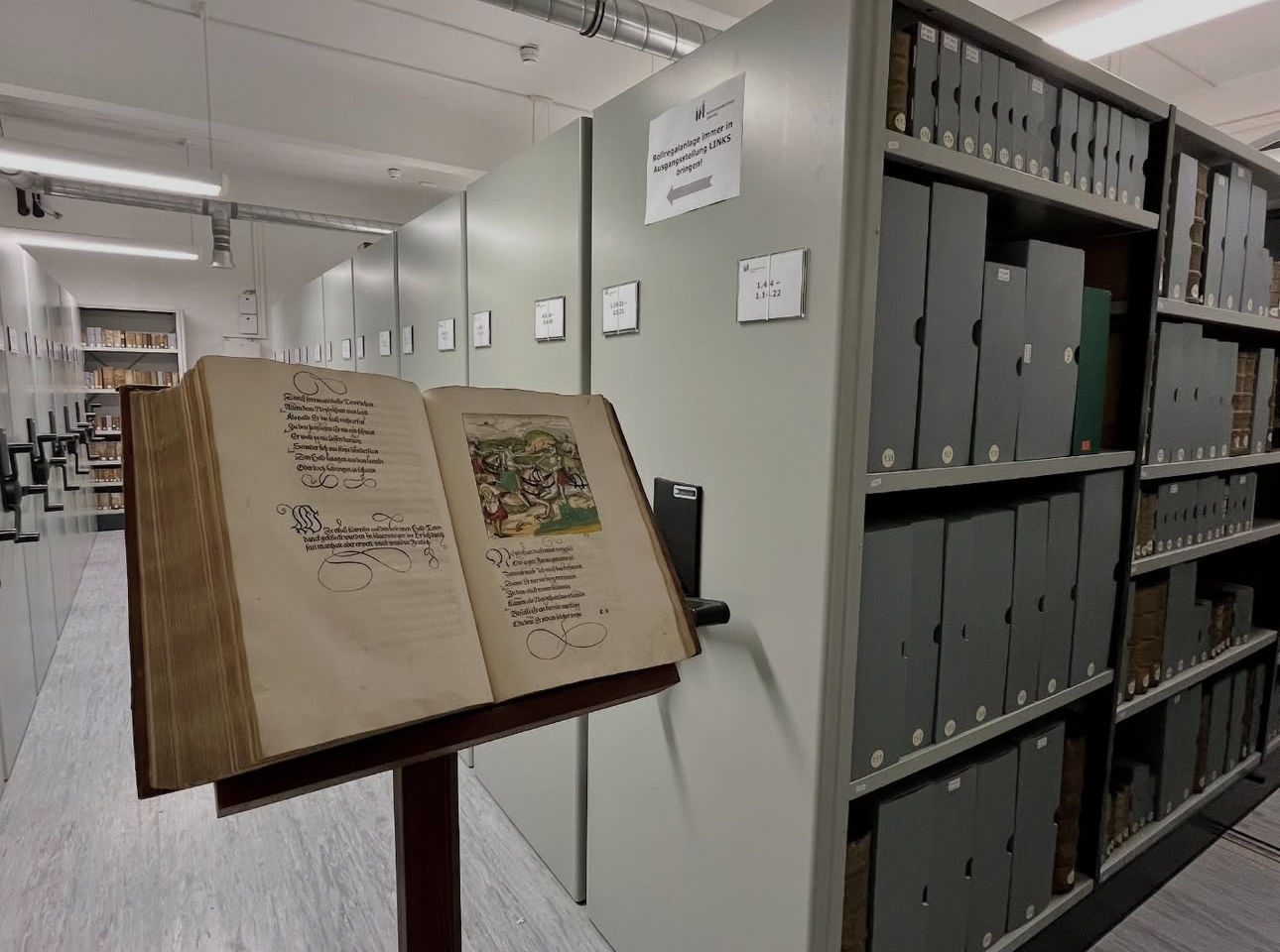 - Ein Großteil des historischen Bestandes kann vor Ort genutzt werden, der Rest muss vorbestellt werden.