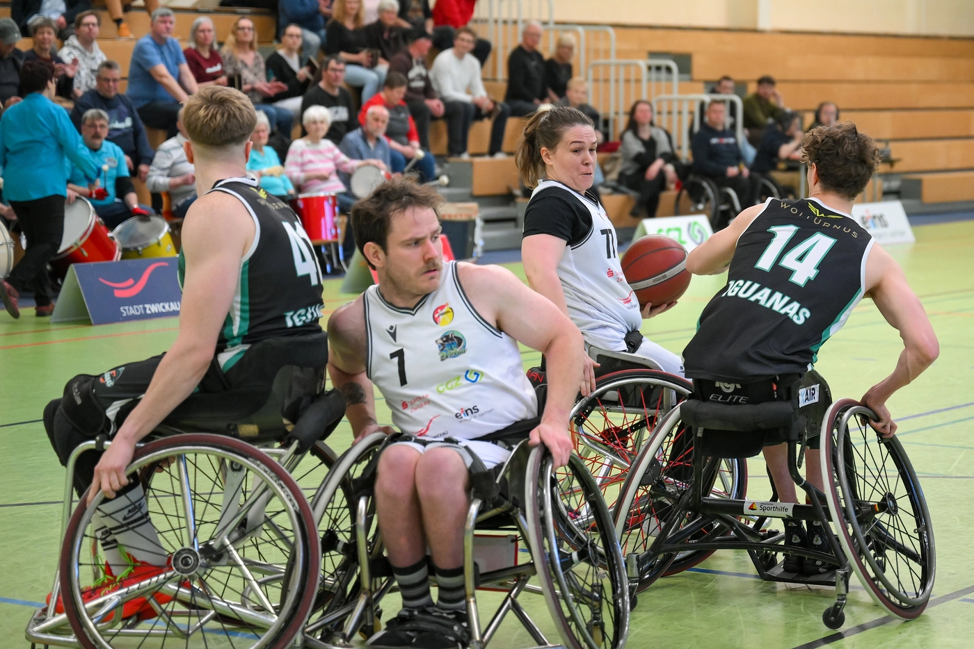 RB Zwickau hat am Sonnabend im letzten Heimspiel der Saison in der Rollstuhlbasketball-Bundesliga einen Sieg gefeiert. Das Team setzte sich in der gut besuchten Moseler Sporthalle mit 61:55 gegen die RBB München Iguanas durch. Die Partie war ein Duell auf Augenhöhe. Vier Minuten vor dem Ende stand es noch unentschieden, doch die Zwickauer behielten die Nerven.