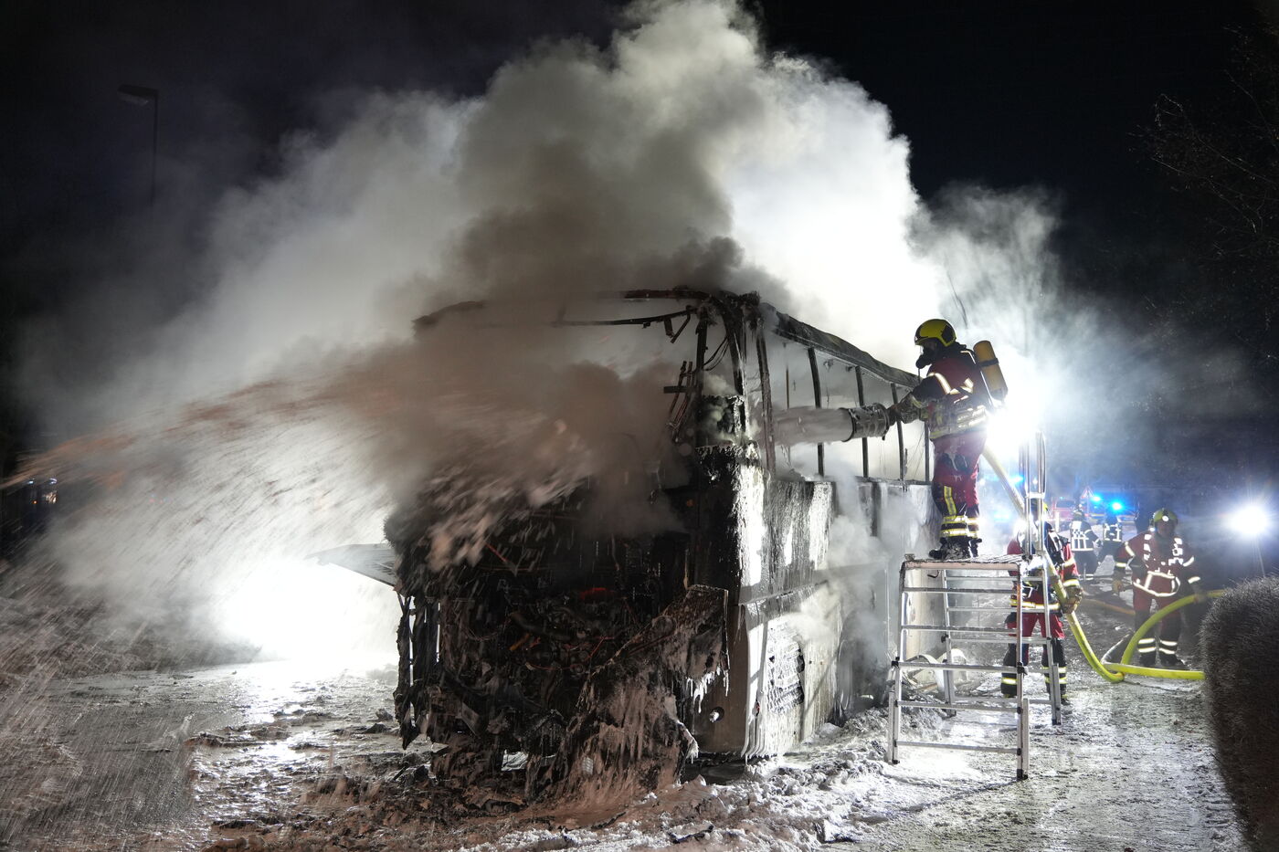 Laut Polizei habe der Bus „ordnungsgemäß geparkt“ auf der Otto-Schmidt-Straße gestanden. Die Kripo ermittelt wegen Brandstiftung.