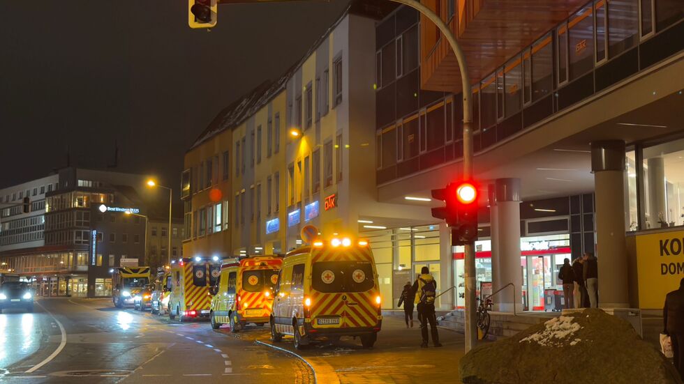 Kurz vor 18 Uhr hatte ein bislang unbekannter Täter an der Bushaltestelle am Kornmarkthaus das Reizgas versprüht. Daraufhin wurde Alarm ausgelöst. Die Rettungsleitstelle schickte fünf Krankenwagen los. Der Kriminaldienst hat die Ermittlungen übernommen.