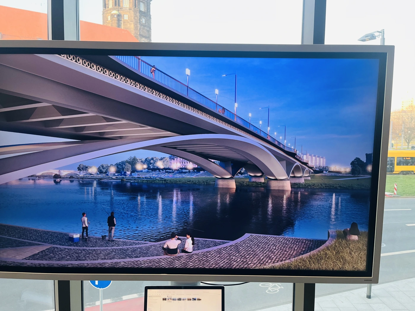 - Diese Visualisierung einer möglichen neuen Carolabrücke war gestern u.a. zu sehen