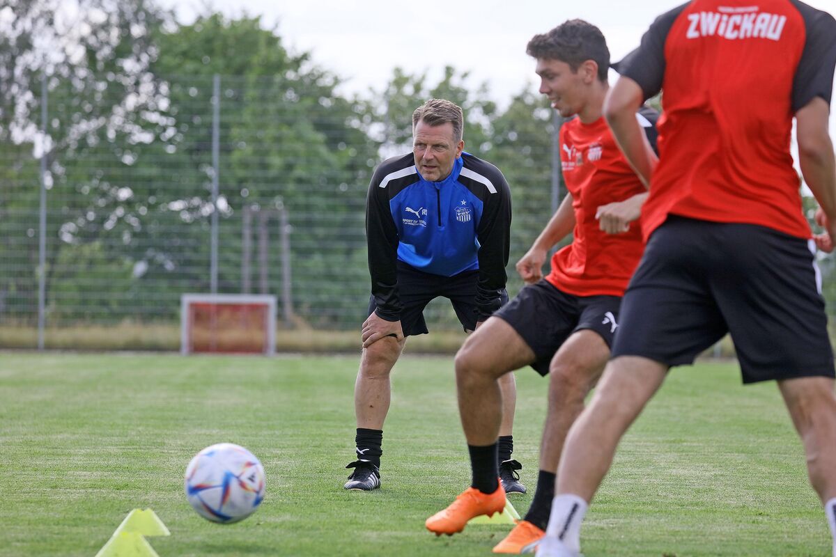 - Rico Schmitt (hinten) beim Coachen auf dem Trainingsplatz
