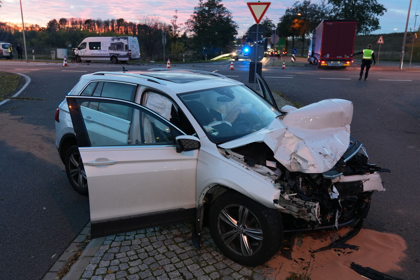 - Der beteiligte SUV wurde schwer beschädigt, mehrere Airbags sind aufgegangen.