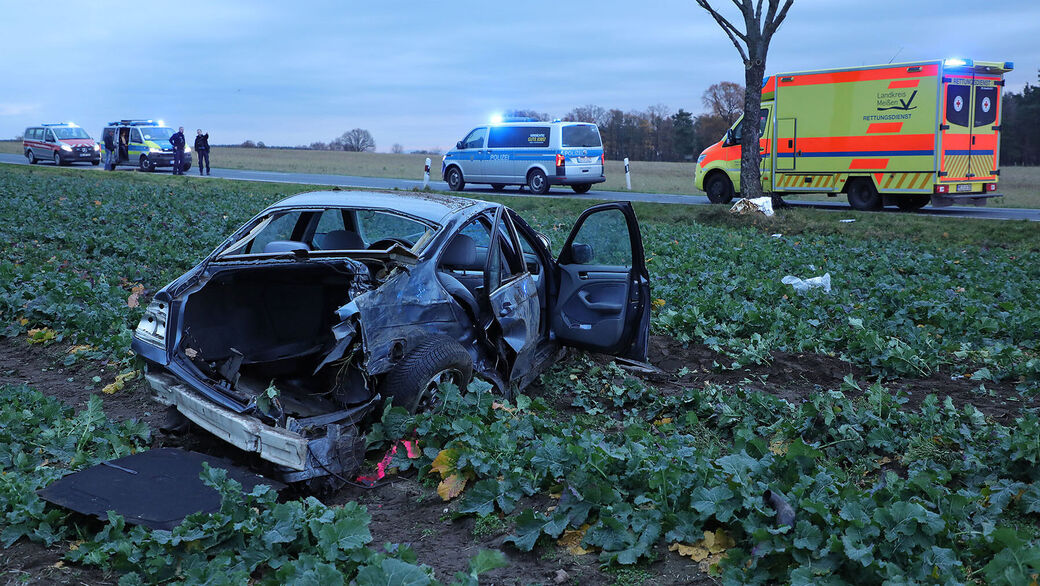Bei einem schweren Unfall auf der B98 bei Lampertswalde im Kreis Meißen sind am Sonntagnachmittag vier Menschen verletzt worden. Eine 29 Jahre alte Autofahrerin war gegen 15 Uhr zwischen Folbern und Quersa beim Überholen ins Schleudern geraten. Der BWM prallte gegen einen Straßenbaum, überschlug sich und blieb auf einem Feld liegen, wie uns ein Polizeisprecher sagte.