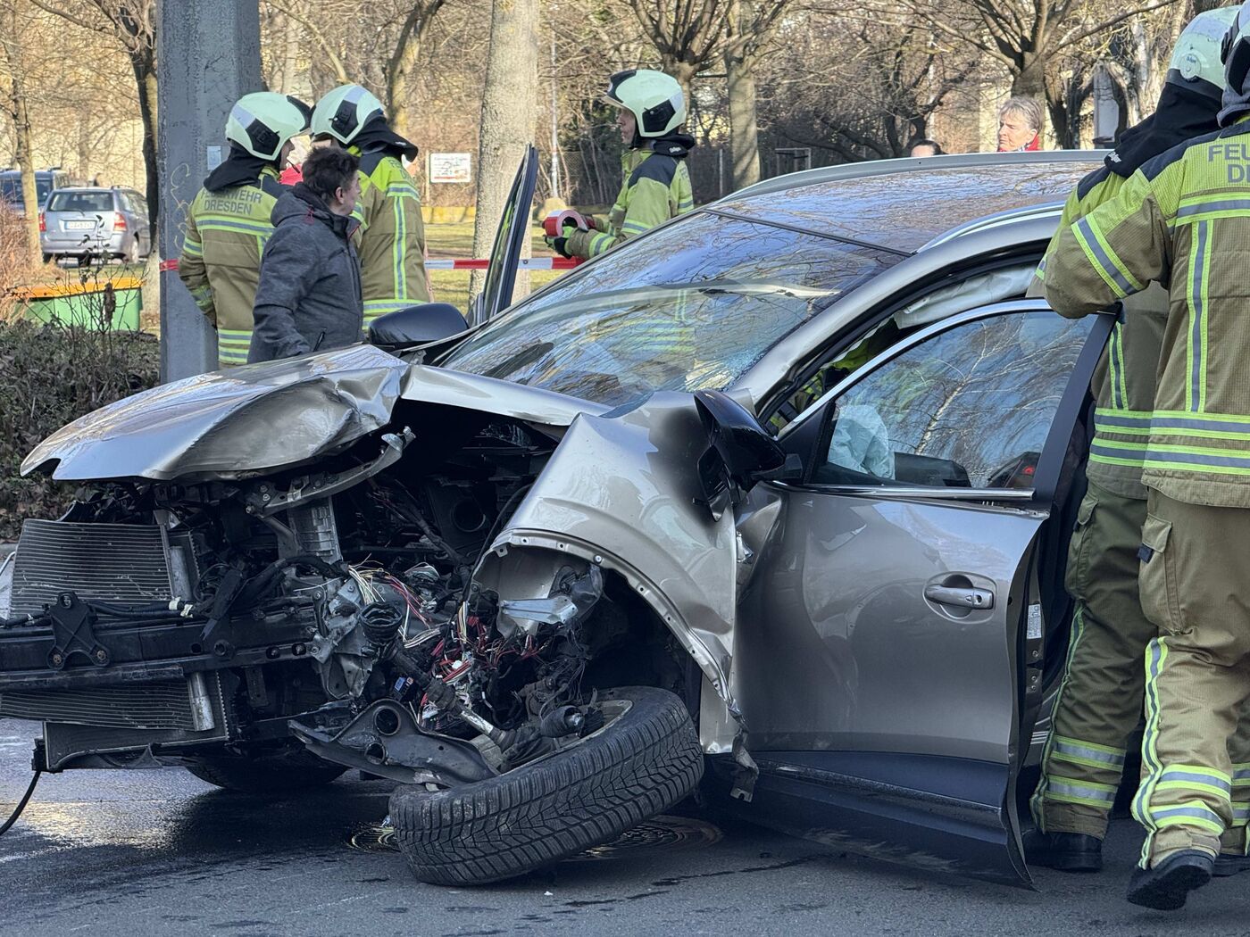 - Die Schandauer Stra0e ist wegen des Unfalls gesperrt