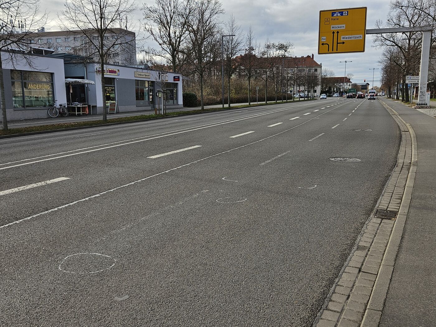 - Die Unfallstelle (Max-Liebermann-Straße im Leipziger Stadtteil Gohlis-Nord).