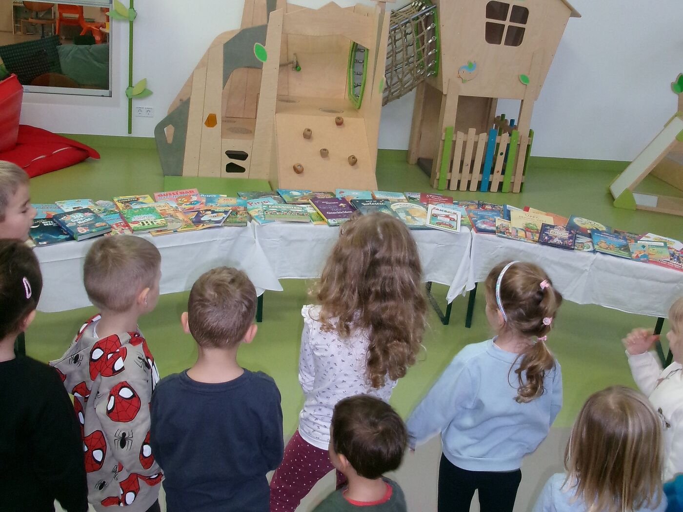 Dank der Mitarbeit der Eltern fand außerdem ein großer Bücherbasar statt: Jedes Kind hatte dafür mindestens ein „ausgelesenes“ Buch mitgebracht. Aus der so entstandenen „Sammlung“ konnte sich jedes Kind mindestens ein „neues“ Buch aussuchen und mit nach Hause nehmen.