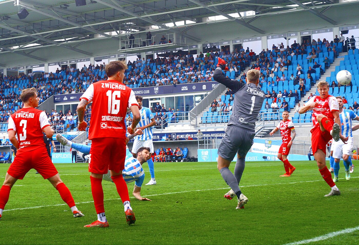 Der Chemnitzer FC hat das Westsachsenderby in der Regionalliga gewonnen. Mit 2:0 setzten sich die Himmelblauen am Sonntag zuhause gegen den FSV Zwickau durch. Vor mehr als 10.000 Zuschauern gelang Dejan Bozic ein Doppelpack - mit Toren in der 31. und 42. Minute, das erste per Fallrückzieher.