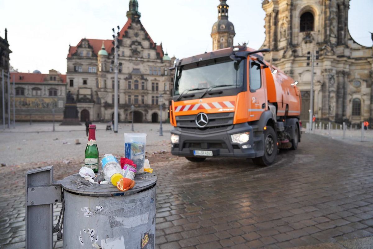 Mit reichlich Feuerwerk haben die Dresdner das neue Jahr begrüßt, nun geht es bei der Stadtreinigung ans große Aufräumen.