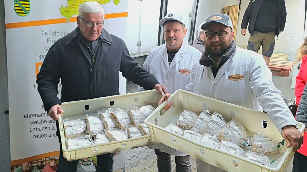 1.700 halbe Weihnachtsstollen für die Tafeln in Ostsachsen. Sie wurden heute in Löbau ausgegeben. Es handelt sich um eine Spende des Schwerdtner Bäckers. Die Stollen haben einen Wert von rund 22.000 Euro. Das Unternehmen unterstützt die Tafeln der Region schon seit über 15 Jahren mit weihnachtlichen Leckereien. Der Landesvorstand der Tafel Sachsen dankte „für die großartige Solidarität gegenüber den Schwächsten der Gesellschaft“. Er würdigte das langjährige Engagement des Unternehmens, der Schwerdtner GmbH Löbau.