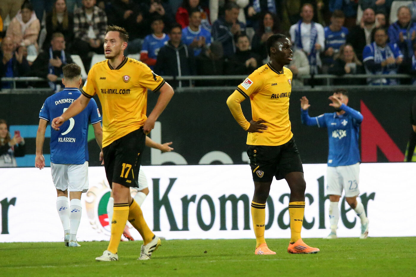 Zum dritten Mal in dieser Saison einen Tabellenführer stürzen: Das war die Hoffnung von Dynamo Dresden vor dem Spiel beim SV Darmstadt 98. Doch daraus wurde nichts. Trotz anfangs überzeugender Leistung verlor der Aufsteiger in Hessen mit 0:2 (0:1) und droht nun am siebten Spieltag der 2. Fußball-Bundesliga auf einen Abstiegsplatz zurückzufallen.