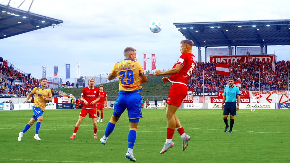 Der FSV hätte früh in Führung gehen können: In den ersten zehn Minuten gab es drei dickere Torchancen – den Kopfball von Maximilian Somnitz nach einer Ecke konnte ein Jenaer gerade noch wegschlagen.