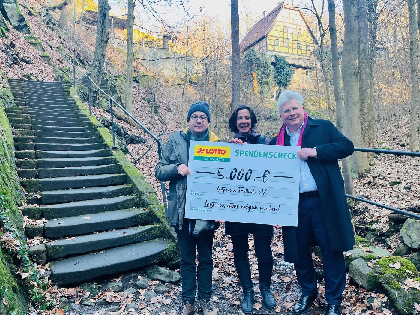 Große Freude bei der Bürgerinitiative Keppgrund in Pillnitz: Sie bekam am Dienstag einen Scheck über 5000 Euro von Kabarettist Tom Pauls überreicht, den Sachsenlotto sponserte. Im Projekt „Möglichmacher“ gibt Sachsenlotto jährlich 50.000 Euro für gemeinnützige Zwecke aus.